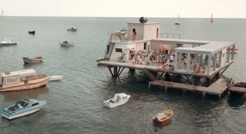 ジョルジオは、イタリアの領海外(公海)であるアドリア海沖に、鉄骨を組み上げた巨大なプラットフォームを建設します。そこはどこの国の法律も及ばない「自由な場所」でした。