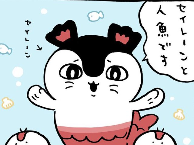 島で島民の歓迎を受け、島を満喫していたちいかわたちですが、やがて島の洞窟で伝説の生物・セイレーンと人魚に遭遇します。